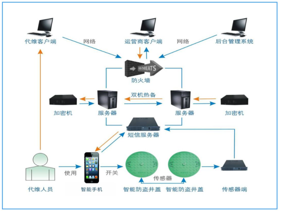 該產(chǎn)品通過手機APP與鎖體建立通訊連接,實現(xiàn)井蓋密碼鎖更智能、更安全的手機開、關鎖方式。通過云平臺和手機APP平臺可實時查詢井蓋開關狀態(tài),對非法開啟、異動等異常狀態(tài)及時報警,采集并記錄井蓋工作狀態(tài)數(shù)據(jù)等。井蓋部分采用鍍鋅鋼板切割成型,鎖體采用高強度、耐腐蝕航天材料,高精度加工,有極高的防水、防潮、防塵、防震能力,同時配有RFID身份識別芯片,每個鎖均有獨立身份密碼,有效防止井蓋非法開啟、保護井下資源。