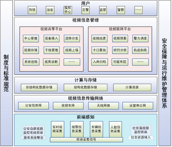 該層包括公安各警種,如刑偵、治安、指揮中心、督察、交警、監(jiān)管、反恐等部門用戶。作為視頻系統(tǒng)的直接用戶,通過(guò)對(duì)業(yè)務(wù)及基礎(chǔ)功能的應(yīng)用,完成對(duì)基于視頻應(yīng)用業(yè)務(wù)的日常處理工作。